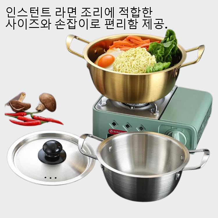 프리미엄 스테인리스 스틸로 제작되어 내구성이 뛰어나며, 인스턴트 라면 조리에 적합한 사이즈와 손잡이로 편리함 제공.